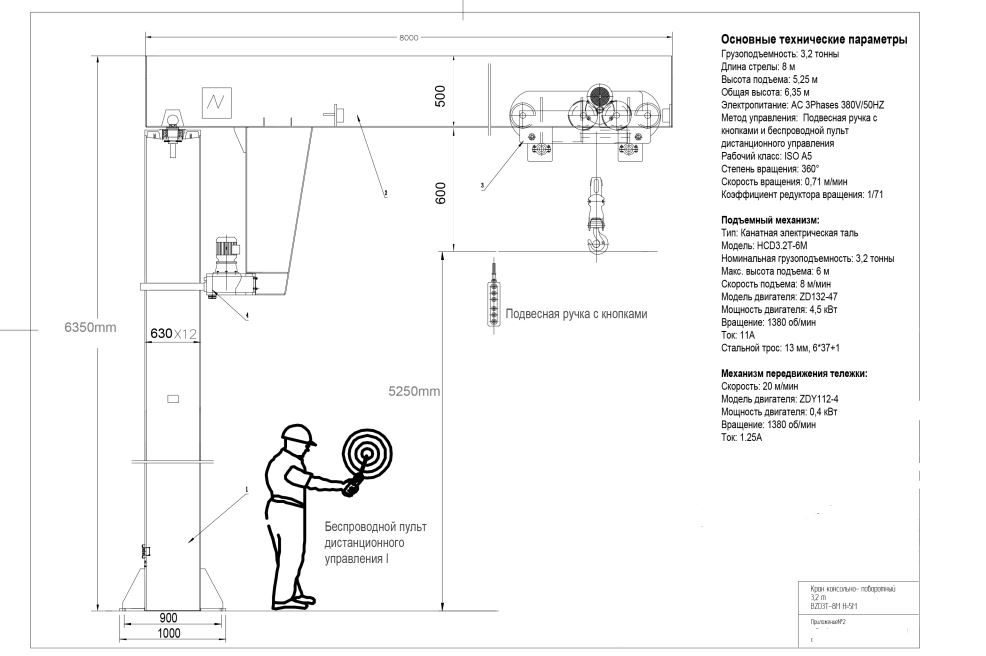 Чертежи общего вида включают несколько проекций крана: вид спереди, сбоку и сверху. На этих чертежах отображаются габариты конструкции, расположение основных узлов, механизмы подъёма и перемещения. Особое внимание уделяется точности масштаба и чёткости линий.