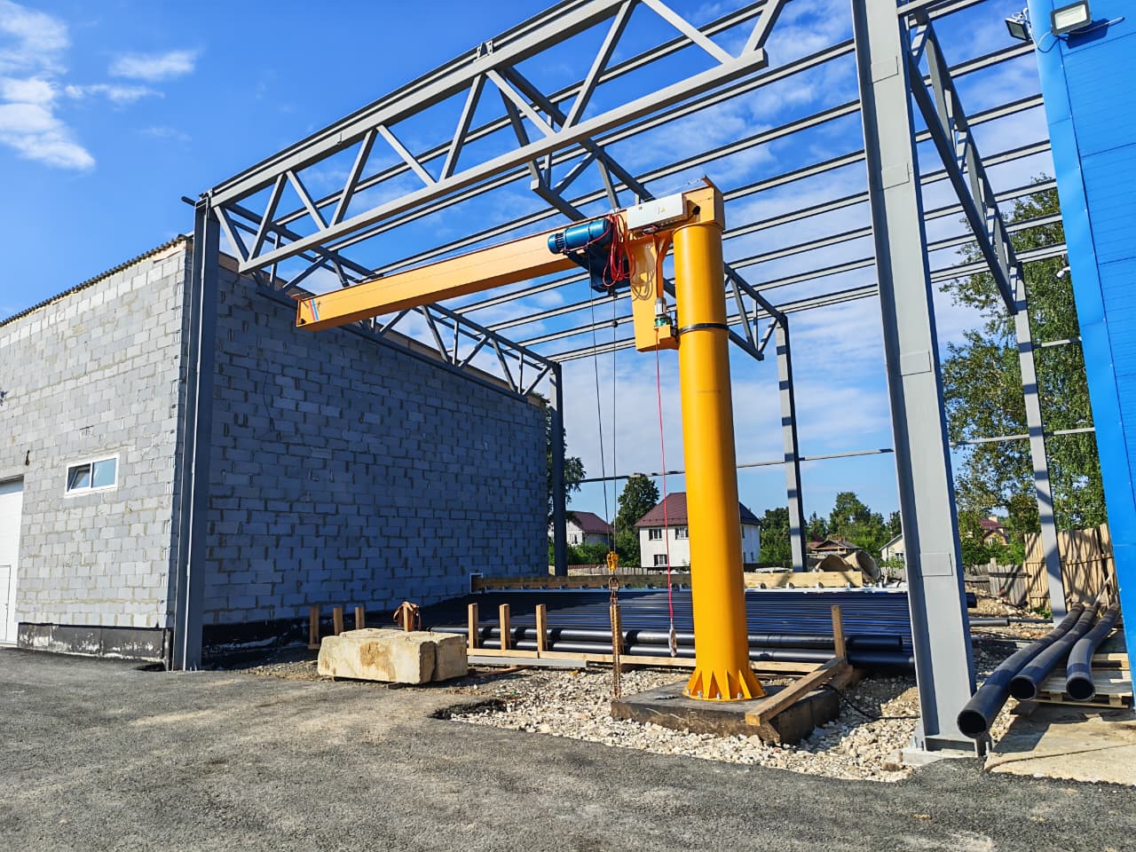 На автомобильном заводе консольный кран служит для подачи комплектующих на конвейерную линию, перемещения крупных узлов при сборке и транспортировке готовой продукции. В энергетическом секторе, например на тепловых электростанциях, эти механизмы используются для монтажа и обслуживания оборудования, перемещения запасных частей и материалов.