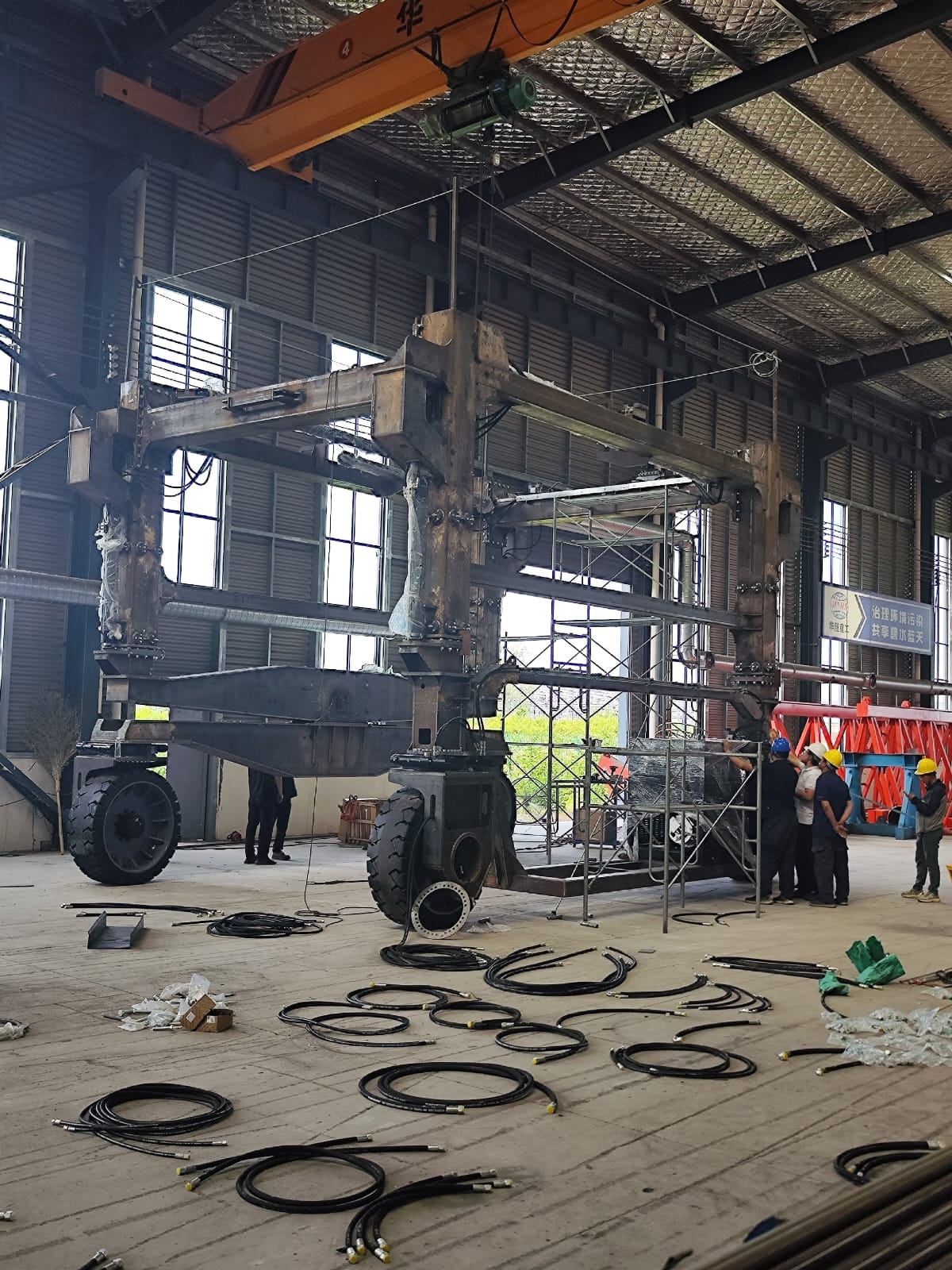 На нашем заводе в Китае разработан уникальный мобильный кран на колёсах, способный эффективно перетаскивать контейнеры и другие габаритные грузы.